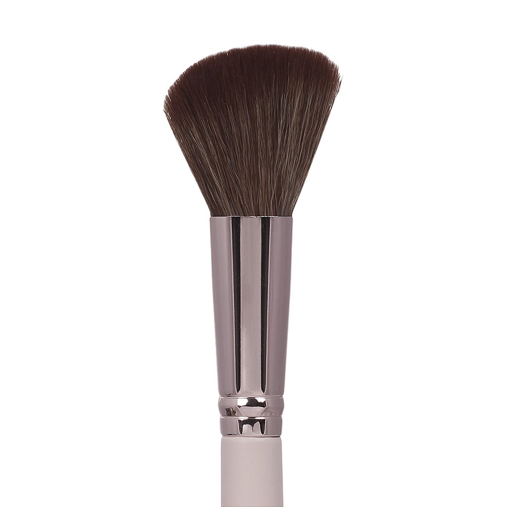 Seu formato chanfrado se adapta perfeitamente às curvas do rosto, facilitando a aplicação nas maçãs, laterais e contornos faciais.